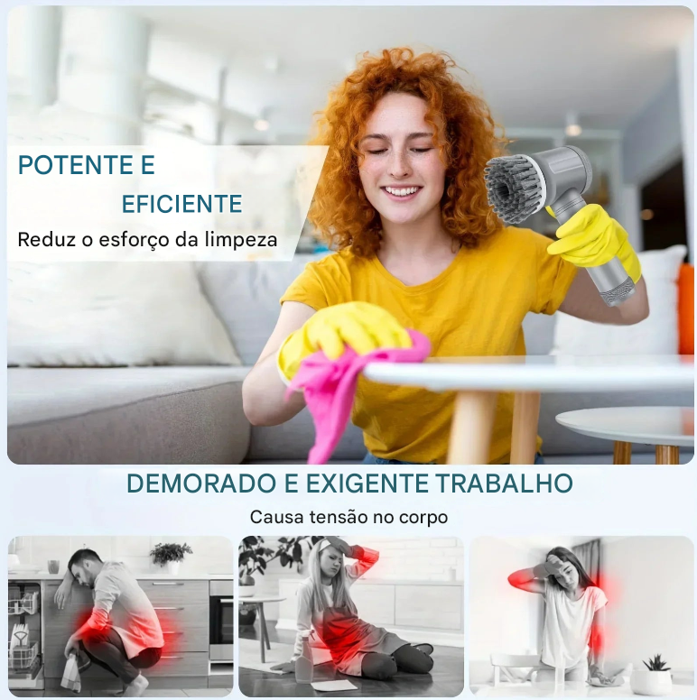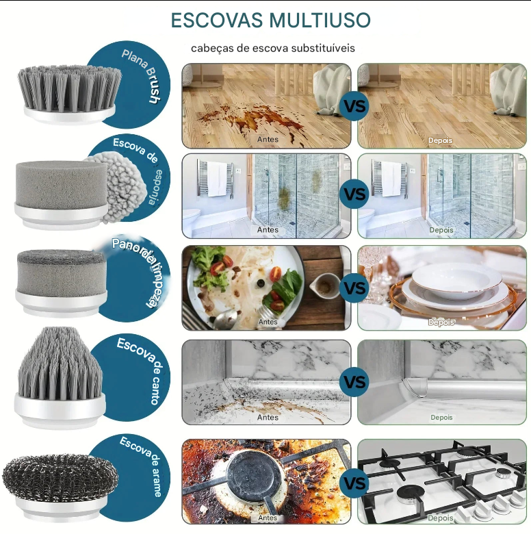 A Escova Elétrica Multiuso elimina sujeira difícil enquanto você economiza tempo, força e energia. Limpeza pesada e profunda sem esforço em minutos, sem cansar o corpo.