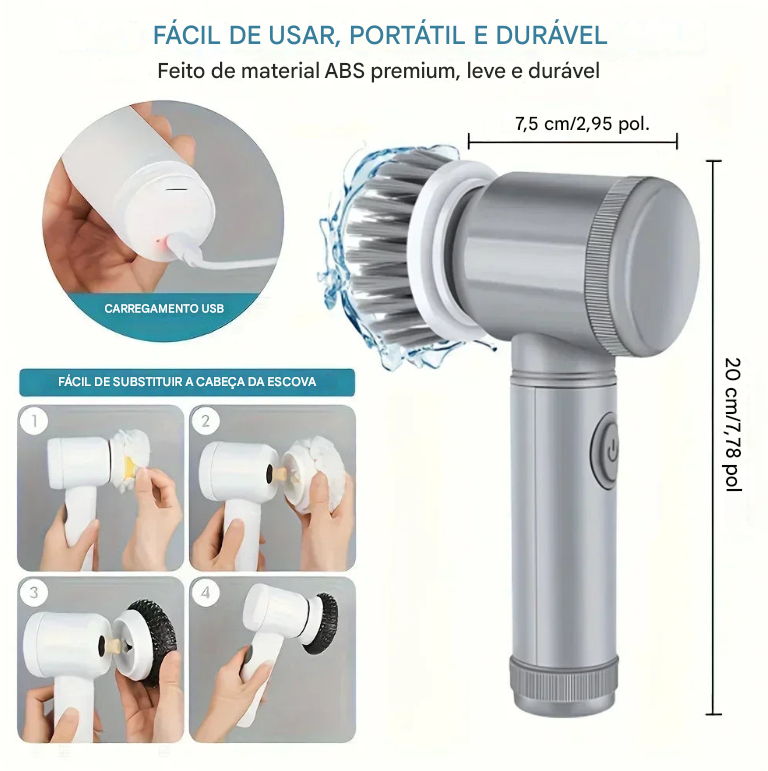 Fabricada em ABS resistente e equipada com proteção contra sobrecarga e vazamentos, a Escova Elétrica Multiuso é leve, durável e segura. Os diferentes tipos de escovas se adaptam a cada tarefa, enquanto o sistema de proteção garante tranquilidade no uso diário, inclusive para idosos.
